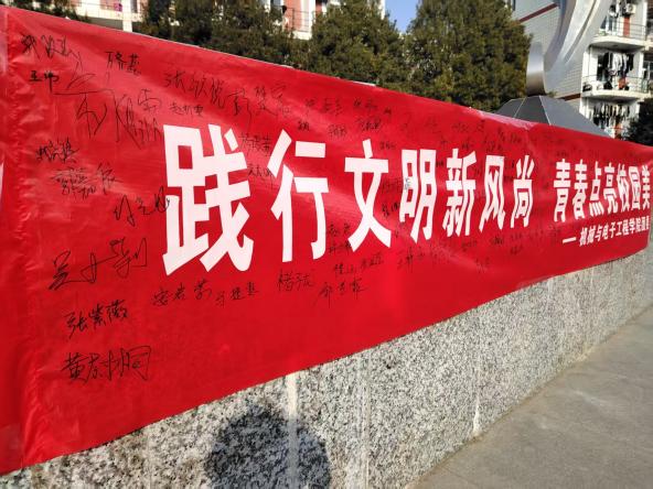 活动分为线下、线上两个阶段同步开展。线下活动现场,志愿者们详细讲解文明行为的重要性,展示文明倡议内容,同学们认真学习后纷纷在倡议书上郑重签字;主题横幅前人头攒动,参与同学有序签名并合影留念,用实际行动践行文明承诺。线上阶段则开展文明瞬间征集活动,鼓励同学们拍摄校园文明行为照片并发送至活动群参与评选,让文明之风通过镜头传递到校园的每个角落。